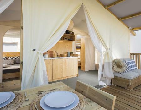 Das Restaurant und die Bar und bieten überdachte und nicht überdachte Sitzplätze. Sie befinden sich im zentralen Bereich des Campingplatzes neben dem Poolkomplex. Take-Away-Service verfügbar.